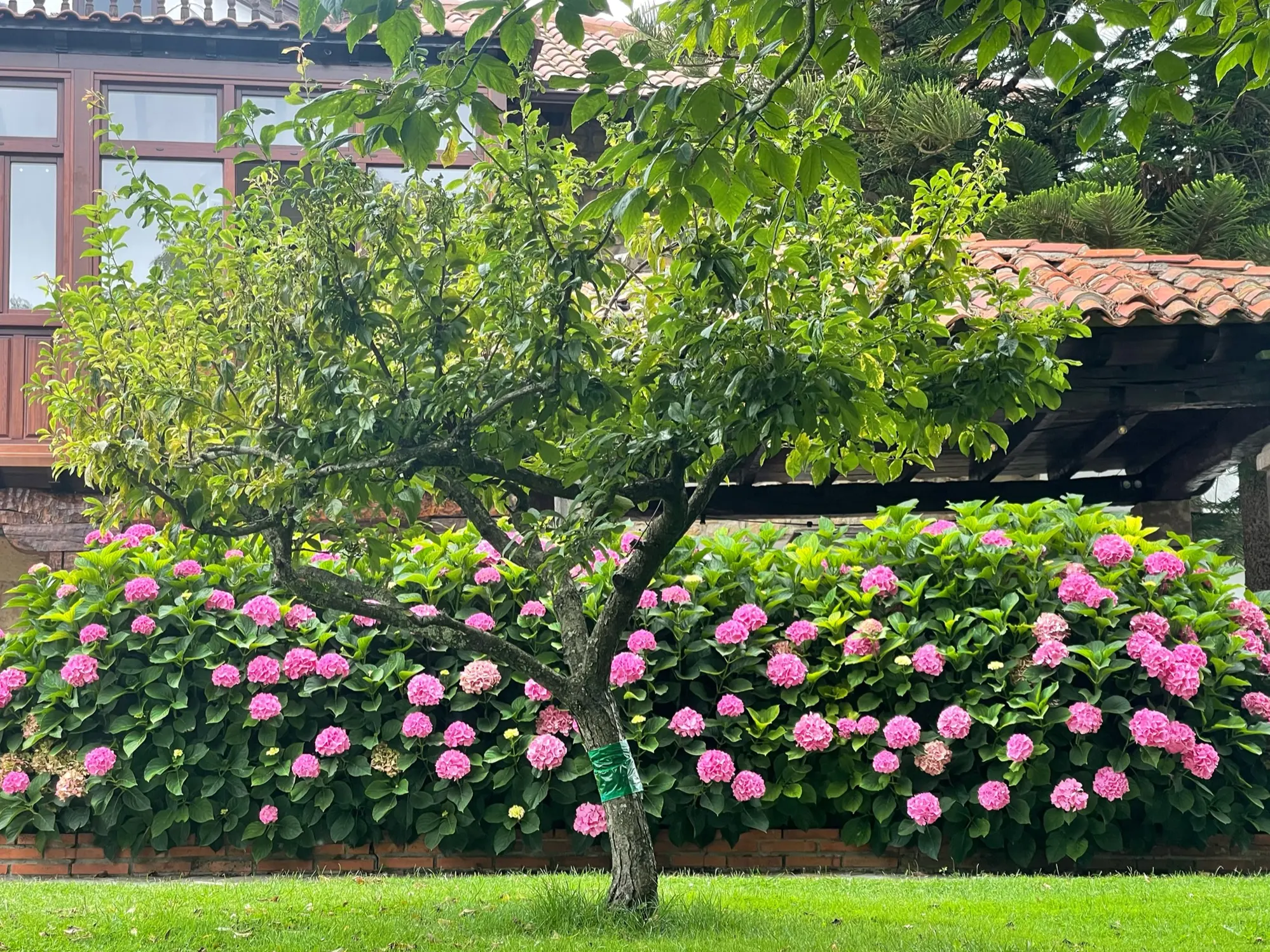 Su cuidada vegetación combina una gran variedad de árboles y arbustos ejemplares que, junto a las zonas de sombra natural y rincones de descanso, crean una atmósfera fresca, relajada y profundamente conectada con la naturaleza. Entre ellos destaca con orgullo una Araucaria centenaria, catalogada y protegida, vestigio vivo de los jardines indianos típicos de Cantabria.